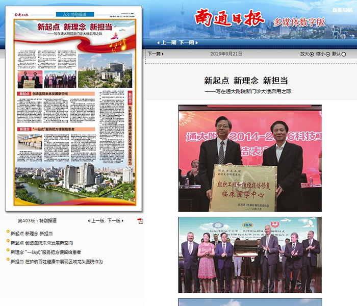 南通日报:新起点 新理念 新担当——写在通大附院新门诊大楼启用之际