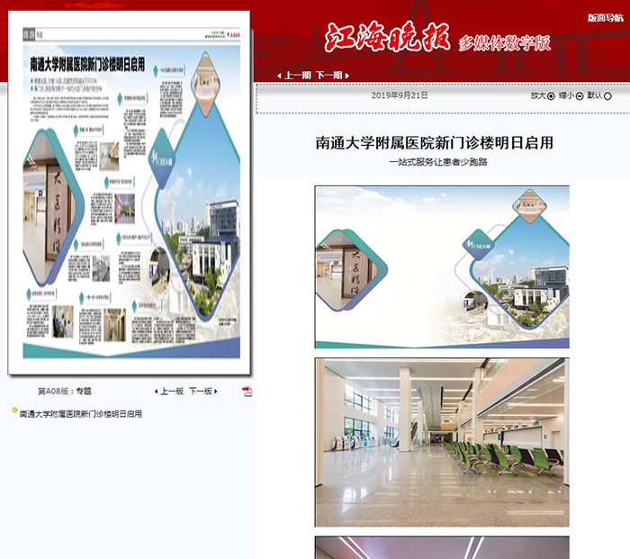 江海晚报:南通大学附属医院新门诊楼明日启用
