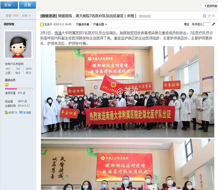濠滨论坛:驰援前线,通大附院7名医疗队员出征湖北