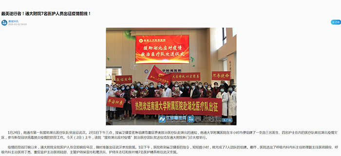 江海明珠网:最美逆行者!通大附院7名医护人员出征疫情前线!