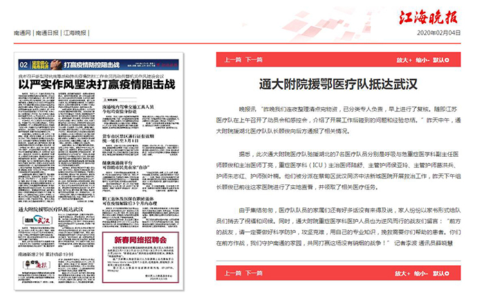 江海晚报:通大附院援鄂医疗队抵达武汉