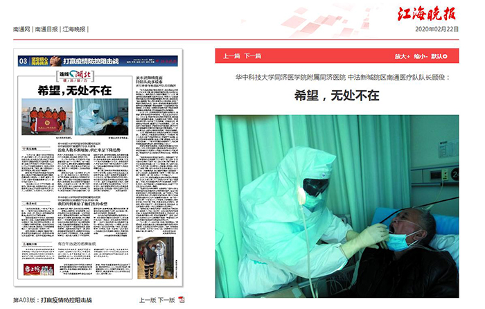 江海晚报:中法新城院区南通医疗队队长顾俊——希望,无处不在