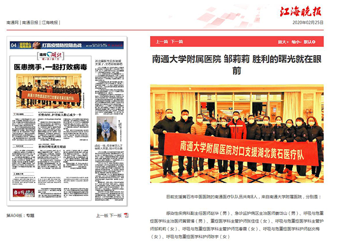 江海晚报:南通大学附属医院邹莉莉——胜利的曙光就在眼前