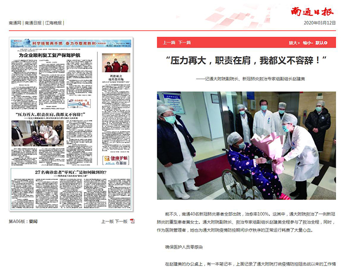 南通日报:“压力再大,职责在肩,我都义不容辞!”——记通大附院副院长、新冠肺炎救治专家组副组长赵建美