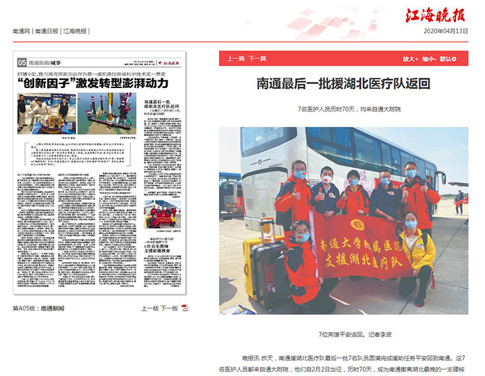 江海晚报:南通最后一批援湖北医疗队返回