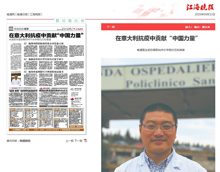 江海晚报:在意大利抗疫中贡献“中国力量”