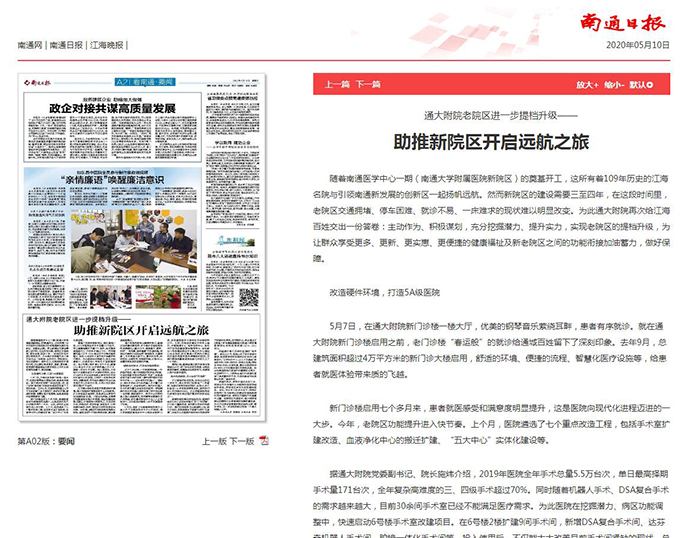 南通日报:通大附院老院区进一步提档升级,助推新院区开启远航之旅