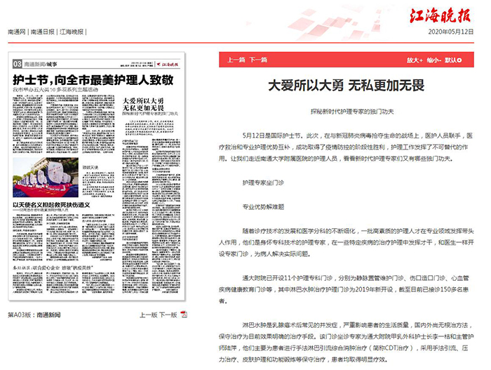 江海晚报:大爱所以大勇 无私更加无畏——探秘新时代护理专家的独门功夫