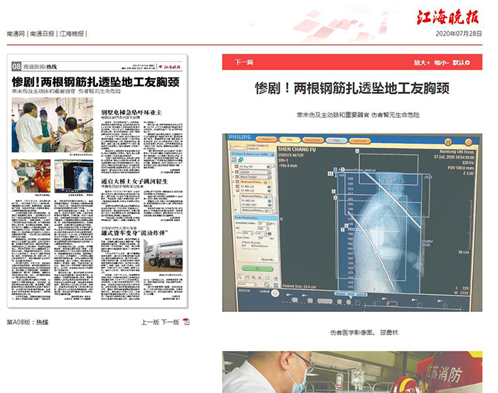江海晚报:惨剧!两根钢筋扎透坠地工友胸颈