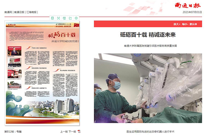 南通日报:砥砺百十载 精诚逐未来——南通大学附属医院党建引领医疗服务高质量发展