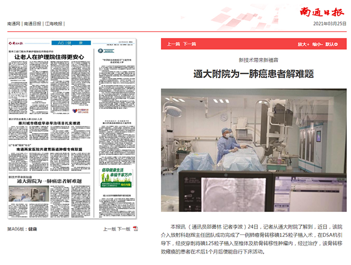 南通日报:新技术带来新福音 通大附院为一肺癌患者解难题