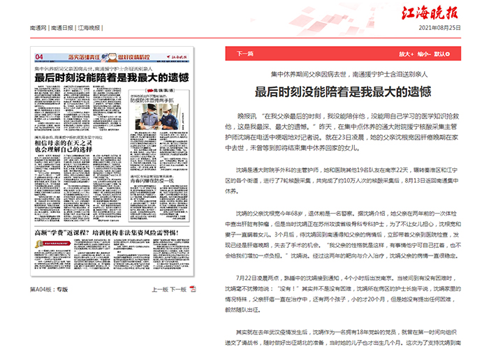 江海晚报:最后时刻没能陪着是我最大的遗憾