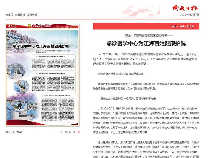 南通日报:急诊医学中心为江海百姓健康护航