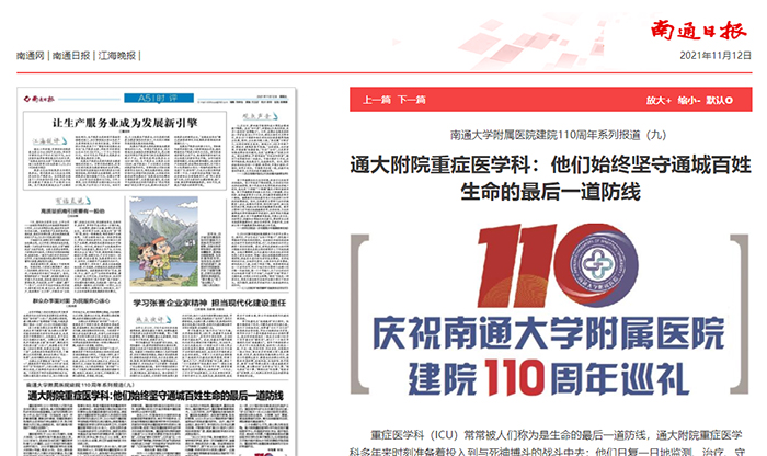 南通日报:通大附院重症医学科:他们始终坚守通城百姓生命的最后一道防线