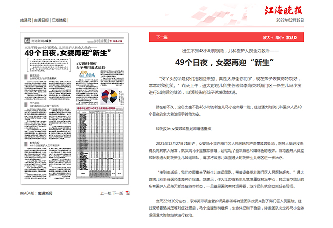 江海晚报:49个日夜,女婴再迎“新生”