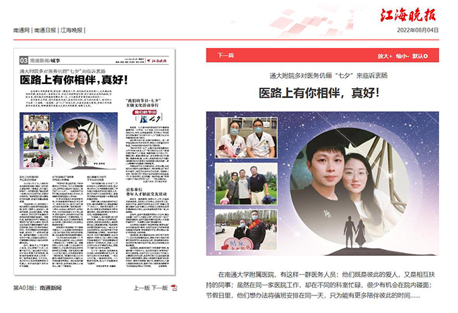 江海晚报:通大附院多对医务伉俪“七夕”来临诉衷肠