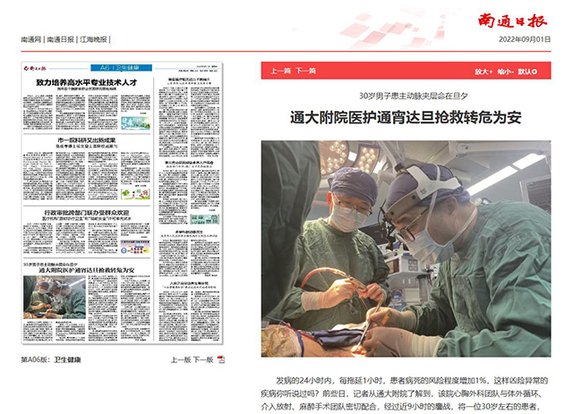南通日报:通大附院医护通宵达旦抢救转危为安