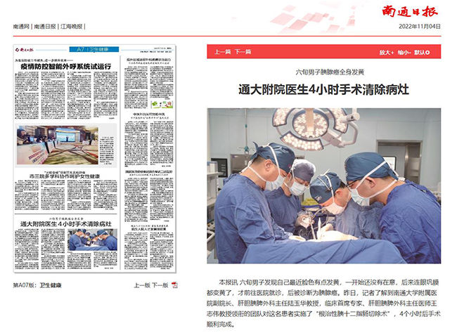 南通日报:六旬男子胰腺癌全身发黄