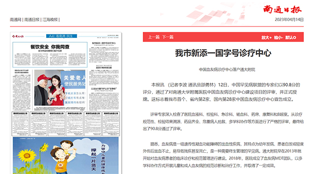 南通日报:我市新添一国字号诊疗中心