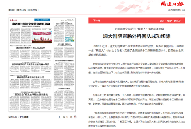 南通日报:内脏器官全长反的“镜面人”罹患肠道肿瘤,通大附院胃肠外科团队成功切除