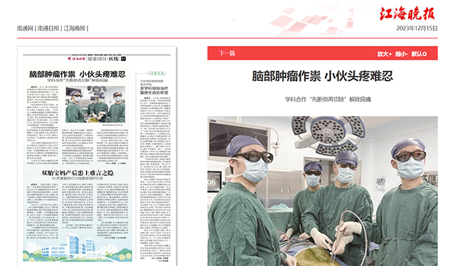 江海晚报:脑部肿瘤作祟 小伙头疼难忍