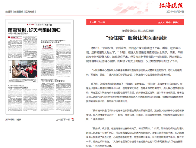 江海晚报:“预住院”服务让就医更便捷