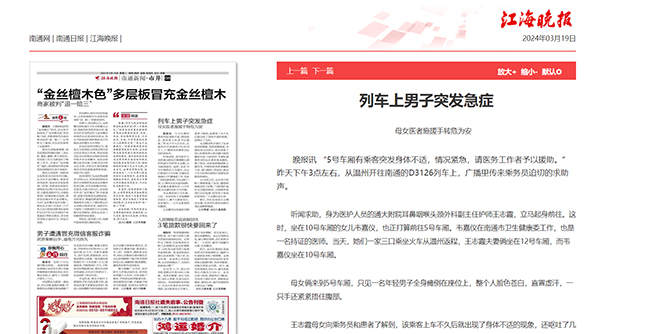 江海晚报:列车上男子突发急症