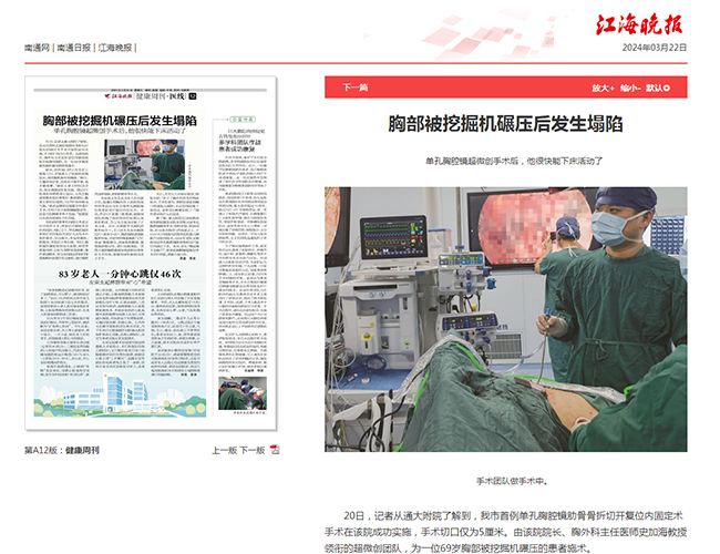 江海晚报:胸部被挖掘机碾压后发生塌陷