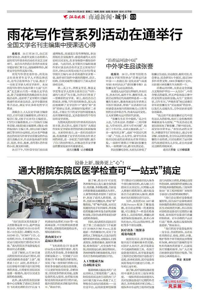 江海晚报:通大附院东院区医学检查可“一站式”搞定
