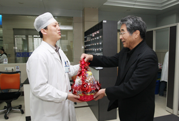 生川韶吾为医护人员送上水果篮表达谢意
