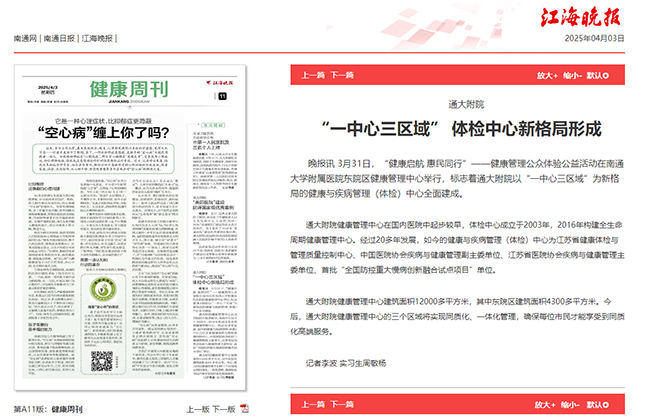 江海晚报:通大附院“一中心三区域” 体检中心新格局形成