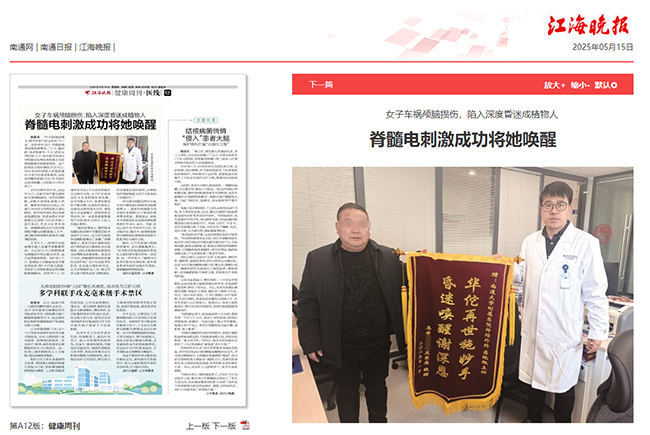 南通日报:女子车祸颅脑损伤,陷入深度昏迷成植物人,脊髓电刺激成功将她唤醒