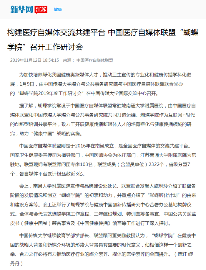 新华网:构建医疗自媒体交流共建平台 中国医疗自媒体联盟“蝴蝶学院”召开工作研讨会