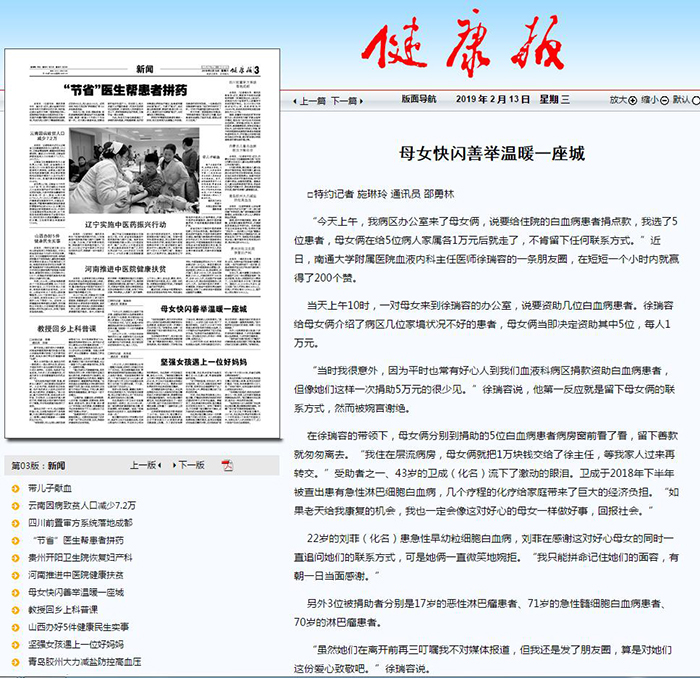 健康报:母女快闪善举温暖一座城
