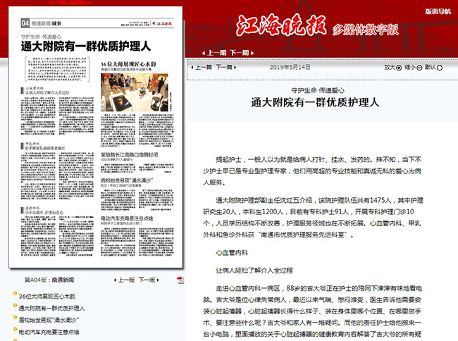 江海晚报:守护生命 传递爱心 通大附院有一群优质护理人