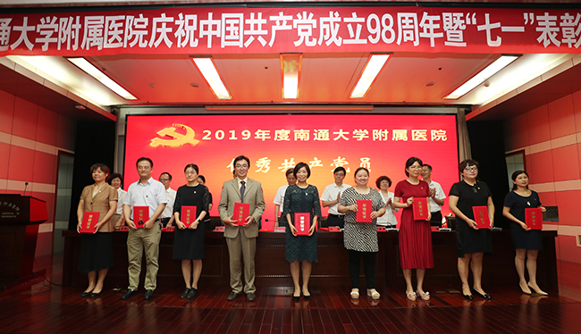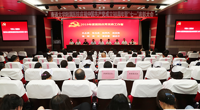 7月1日下午,在庄严而雄壮的国歌声中,我院庆祝中国共产党成立98周年暨七一表彰大会在影像楼四楼报告厅隆重举行。院领导高建林、施炜、彭宇飞、邢晓源、景春平、马强、史加海、赵建美、鲁菊英等出席会议并为受表彰的先进集体和个人颁奖。 院党委书记高建林在会上讲话,他回首了过去一年院党委坚持以习近平新时代中国特色社会主义思想和党的十九大精神为指导,贯彻落实全面从严治党要求,始终坚持“围绕中心抓党建,抓好党建促发展”,率先贯彻落实中央、国家卫健委、江苏省委关于加强公立医院党的建设工作的系列部署,紧紧围绕南通大学党代会、医院党代会确立的奋斗目标和主要任务,切实发挥党委把方向、管大局、作决策、促改革、保落实的领导作用,扎实推进新时期医院党的建设各项工作任务,学科建设进一步加强,科技创新成效显著,人才工作稳步推进,医疗质量和安全持续改进,软硬件设施不断改善,各项工作效率、效益指标再创新高,社会效益显著增强,医院优质的服务、精良的医术深得江海百姓的充分信赖。 高建林结合医院当前和下一阶段的工作,结合贯彻落实南通大学党委书记浦玉忠在学校庆祝中国共产党成立98周年暨“七一”表彰大会上的讲话精神、扎实推进医院各项工作提三点要求。 一要不忘初心,牢记使命,奋力开创医院党建工作新局面。党中央决定在全党开展“不忘初心、牢记使命”主题教育,是用习近平新时代中国特色社会主义思想武装全党的迫切需要。我们要深刻认识到,当前医院建设发展任务十分繁重,复杂形势面前,唯有不忘初心,才能知根知本、坚定信仰;繁重任务面前,唯有牢记使命,才能知重扛重、砥砺前行。我们要抓住主题教育契机,坚持全面从严治党,切实贯彻落实加强公立医院党的建设的系列部署,以政治建设统领党的建设,充分发挥党委的领导核心作用和各基层党组织的战斗堡垒作用,不断推进医院党的建设事业。 二要强化责任,攻坚克难,不断谱写医院建设发展新篇章。医院改革已经进入深水期、事业发展已经进入攻坚期,机遇挑战并存,新老问题交织。在这样的关键时期,要甩开追兵、赶上标兵,实现弯道超车,全院上下必须同频共振,拿出破釜沉舟的胆气、敢于创新的勇气、攻坚克难的锐气、蓬勃向上的朝气,我们全院上下只有保持只争朝夕、奋发有为的奋斗姿态和越是艰险越向前的斗争精神,以钉钉子精神推动各项工作一项一项落实,才能在建设发展中取得重大突破,才能不辜负人民的期盼、组织的重托。 三要以人为本,提升内涵,着力打造群众就医体验新高地。人民群众是否满意是检验医疗服务的金标准。我们不断推进现代医院管理体制改革、加强内涵建设等,根本目的都是为了增强人民群众的就医获得感、幸福感。今年是服务态度整治年,新门诊楼也即将投入使用,这些都是我们的有利契机和有效抓手,一定要将人本理念贯穿到我们工作的每一个环节、落实到我们每一个实践,使得我们的医疗质量和服务内涵同步提升,成为患者满意度高、群众就医体验好的南通高地、全新地标。 高建林强调,回首党的光辉历程,我们倍感骄傲、深受鼓舞;展望医院发展前景,我们充满信心、满怀豪情!他号召全院干部职工要更加紧密团结在以习近平同志为核心的党中央周围,紧紧围绕大学第三次党代会、医院第五次党大会提出的目标任务,始终牢记宗旨、坚定必胜信心,以永不懈怠的精神状态、一往无前的奋斗姿态,撸起袖子加油干,全面展现新时代附院人的新担当新作为,为早日实现百强目标而努力奋斗,以优异的成绩向建院110周年献礼! 院党委副书记、院长施炜宣读了上级党委及医院党委表彰名单。内科六支部等被评为医院先进基层党组织,仇永贵等被评为医院优秀党务工作者,王小荣等被评为医院优秀共产党员。 大会由院党委常务副书记彭宇飞主持。他要求全院上下认真学习、迅速传达、深刻领会高建林的讲话精神,把思想和行动统一到医院党委的各项决策和工作部署上来,自觉以先进为榜样,立足岗位,履职尽责,主动作为、勇于担当,以实际行动为医院事业发展再作新的更大贡献。 会上,院领导与全体党员面向党旗,举手握拳,重温入党誓词,由院党委副书记、纪委书记邢晓源领誓。 会上还举行了微党课优秀作品展示,在今年院党委以“弘扬爱国奋斗精神、建功立业新时代”为主题的微党课比赛中,优秀选手代表朱欣航、游波、吴晓芳向全院党员展示风采,抒发附院人的爱国爱院情怀,诠释立足岗位不断进取的价值追求。 全体中层党员干部、受表彰集体和个人代表、部分党员代表、入党积极分子代表等300余人参加大会。傅 轩