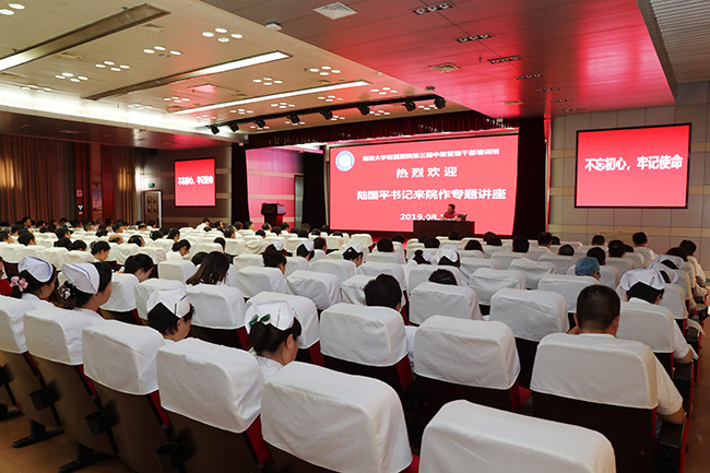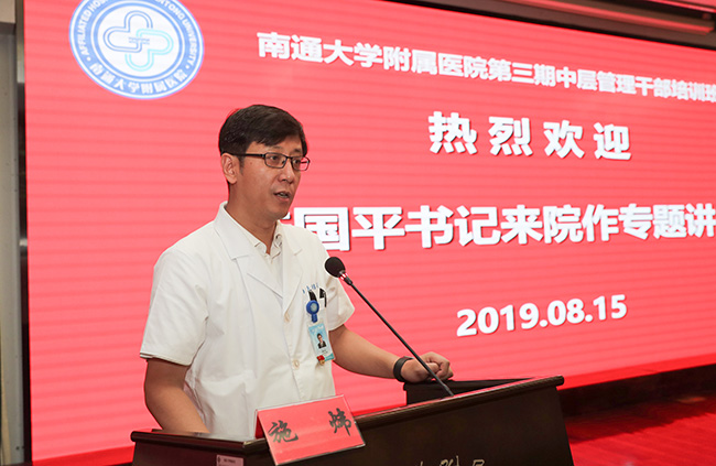 时逢医院完成基层党组织换届和中层管理干部换届聘任工作,为贯彻落实新时代全面从严管理干部新要求,进一步加强医院中层干部队伍建设,8月15日下午,我院举行中层管理干部专题报告会,邀请南通大学党委常委、纪委书记陆国平来院作题为《新时代附属医院基层干部的新要求》专题报告。院党委副书记、院长施炜主持会议。医院党政领导、全体中层以上管理干部、助理岗位人员共300余人参会。 陆国平从解读党章入手,阐述了新时代附属医院的领导干部应如何坚持党和人民的利益高于一切,如何遵守党的政治纪律和政治规矩,怎样维护党的团结和统一等,重点围绕领导干部的“七讲七有”展开。一要讲政治,有理想;二要讲正气,有医德;三要讲规矩,有纪律;四要讲大局,有奉献;五要讲担当,有作为;六要讲团结,有胸怀;七要讲学习,有本领。陆书记强调,党员干部要把学和做统一起来,要脚踏实地、心无旁鹜、躬身实践、边学边改,要学思践悟、立说立行、以知促行、知行合一。最后,陆书记以习近平总书记提出的“八大本领”寄语全院中层管理干部:要增强学习本领、政治领导本领、改革创新本领、科学发展本领、依法执政本领、群众工作本领、狠抓落实本领和驾驭风险本领,做到“七个干”:干、实干、努力干(拼命干)、创造性干、领导带头干、为人民利益干、撸起袖子加油干,努力让自己底色更亮、底气更足、底线更牢,创造通大附院更加美好的明天。 本次专题报告会是我院第三期中层管理干部培训班的第二场。施炜院长感谢陆国平书记的精彩报告,他说,陆书记视野开阔,学识渊博,授课内容振聋发聩,对我院进一步做好新时期干部工作,建立一支忠诚、干净、担当的高素质专业化医院中层管理干部队伍,具有重要意义。全体中层管理干部要认真学习,深刻领会,对照“信念坚定、为民服务、勤政务实、敢于担当、清正廉洁”的好干部标准,在新的岗位、新的起点,始终以奋斗的姿态、实干的精神,为医院事业高质量发展不懈努力!叶伊湉
