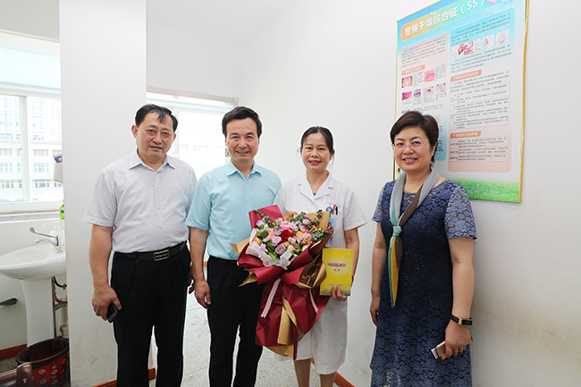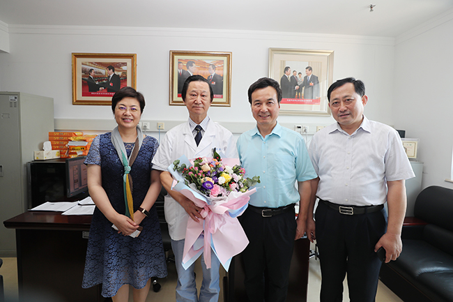 2019年8月19日是第二个“中国医师节”。当天下午,南通市政府副市长徐新民,市政府副秘书长周健,市卫生健康委员会党组书记、主任陈冬梅等一行来院慰问全国人大代表、骨科主任刘璠教授,南通市“最美医生”、风湿免疫科主任达展云教授,并通过他们向奋战在临床一线的医务工作者致以节日的问候和崇高的敬意。院党委常务副书记彭宇飞及相关职能部门负责人陪同慰问。
