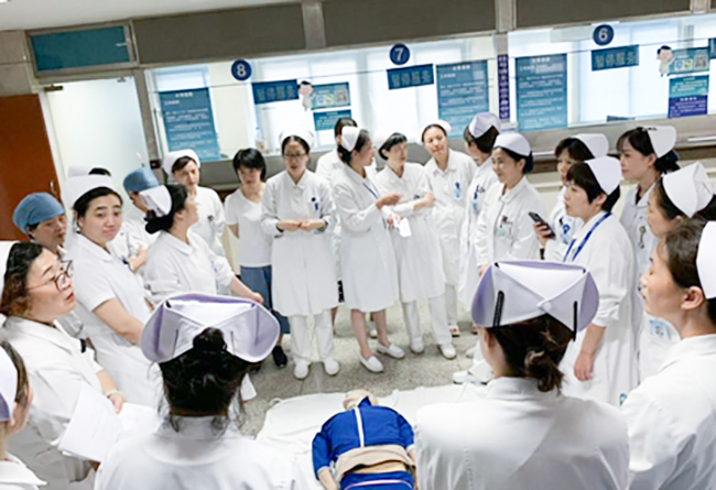 | 主门诊楼护理人员开展紧急医学救援演练与培训 |