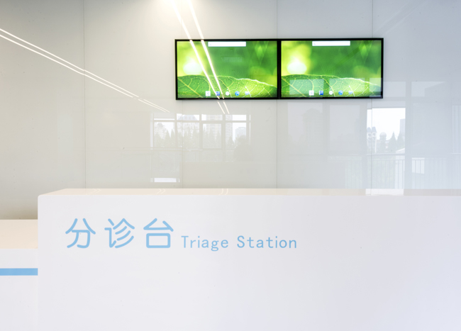 一医一患一诊室,提高效率保护隐私 在老门诊楼就医时,人们常常见到诊室里是这样的情形:医生在为一位病人看病时,其他病人与家属挤在诊室里、围在医生的身旁,医生的工作环境、工作效率、患者的隐私保护都受到很大影响。 而在新门诊大楼,患者到达候诊区后,先在自助报到机上报到确认,大屏幕显示患者名字(中间一个字以*代替),报到后的患者在一级候诊区等待,此时医生可在电脑工作站中获知哪些患者已到达。医生按照预约和到达双结合的顺序统筹安排,在诊区大屏幕、诊室门口显示屏上呼叫即将就诊的2-3位患者到医生诊室外,即二级候诊区等待。每次只有一位患者进入诊室,真正实现一医一患一诊室,有利于节省相邻患者间的等候时间,杜绝了原先的“一人看病众人围观”,提高了医生工作效率,同时也保护了患者的隐私。