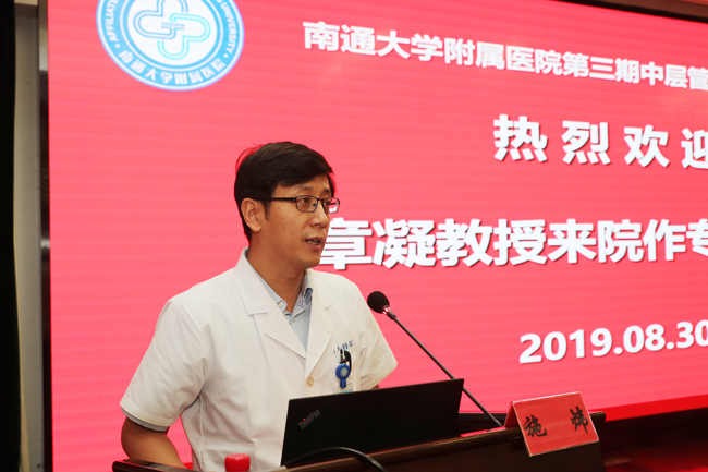 在第二批“不忘初心、牢记使命”主题教育即将开展之际, 8月30日下午,我院举行第三期中层管理干部培训班第三场专题报告会,邀请江苏省委党校章凝教授来院讲授《不忘初心,牢记使命,做有坚定信仰的马克思主义者》。南通市委办公室、研究室、保密局等部门约30多位领导干部来院一同聆听了报告。医院在院院领导、中层以上管理干部、助理岗位人员约300人参加培训。 章凝教授的报告旁征博引,激情抒怀,从当前中国存在的主要社会问题、马克思主义精神内涵以及马克思主义的坚定信仰三个方面,引用大量实例、图文数据,系统阐述了马克思主义基本原理、“为什么要信仰马克思主义”,全面总结了马克思主义的当代价值。章教授强调,马克思主义是不断发展的开放的理论,始终站在时代前沿。作为党员领导干部,应该把马克思主义作为指导思想,认认真真学原文、读原著、悟原理,列出专题学、联系实际学、融会贯通学,在学懂弄通做实上狠下功夫。要以我们正在做的事情为中心,推动马克思主义同我们正在进行的时代实践相结合,在实践中丰富和发展马克思主义,作一个有坚定信仰的马克思主义者。 院党委副书记、院长施炜主持报告会。施炜感谢章教授的精彩授课,他说,章教授思维清晰、见解独特;讲课深入浅出、生动形象。通过章教授的授课,全体与会人员受益匪浅,对马克思主义有了全新的、更加深刻的了解,也为我院即将参加的第二批“不忘初心、牢记使命”主题教育打下了坚实的理论基础。全院干部职工尤其是党员干部,一定要坚定马克思主义信仰,勇于担当,乐于奉献,以充实饱满的工作热情、脚踏实地的工作态度、开拓创新的工作精神努力做好各项工作。 章凝教授现任江苏省委党校马克思主义理论研究中心主任、民族宗教研究所所长,江苏省人大常委会决策咨询专家,江苏省理论宣讲专家组成员。著有宗教学概论、思维哲学等专著和论文。所开设的习近平治国理政的思想方法、马克思主义是与时俱进的科学真理、领导能力与创新思维、传统文化与中国现代化、培育弘扬民族精神等课程被列为精品课程,在省内外机关、部队、院校、企事业单位讲学中受到一致好评,连续多年获江苏省委党校优秀教学评比一等奖、特别奖,江苏省党校系统优秀教学精品课奖。叶伊湉