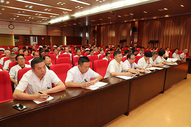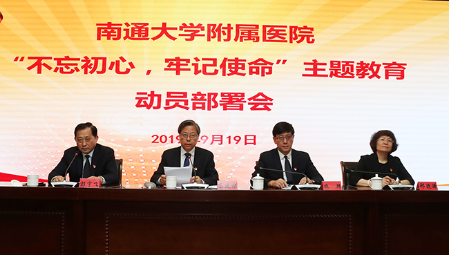 9月19日下午,我院在影像楼四楼报告厅召开“不忘初心、牢记使命”主题教育动员部署会,同时也是我院党务工作干部专题党课,主要任务是以习近平新时代中国特色社会主义思想为指导,深入学习贯彻习近平总书记在“不忘初心、牢记使命”主题教育工作会议上的重要讲话精神,传达学习落实南通大学“不忘初心、牢记使命”主题教育动员会精神,对我院主题教育进行动员部署。 院党委书记高建林首先传达了校党委书记浦玉忠在南通大学“不忘初心、牢记使命”主题教育动员会上作的题为《筑牢初心 勇担使命 以高质量主题教育推进学校跨越发展新征程》的动员讲话精神,省委第12巡回指导组组长、南京艺术学院原党委书记管向群的讲话精神,及贯彻落实好会议精神所提的要求。 高建林就我院深入开展好这次主题教育提出三点意见。一要提高政治站位,充分认识开展主题教育的重大意义。开展主题教育是强化理论武装的重要举措,是推进党的建设的重要实践,是密切联系群众的重大工程,是推动事业发展的重要契机,要充分认识开展主题教育的重要性,自觉把思想和行动统一到习近平总书记重要讲话精神上来,统一到中央、江苏省委、南通大学党委的决策部署上来,以高度的政治自觉、思想自觉和行动自觉开展好这次主题教育。二要聚焦目标要求,高标准高质量推进主题教育开展。这次主题教育的总要求是守初心、担使命,找差距、抓落实;根本任务是深入学习贯彻习近平新时代中国特色社会主义思想,锤炼忠诚干净担当的政治品格、团结带领全国各族人民为实现伟大梦想共同奋斗;具体目标是理论学习有收获、思想政治受洗礼、干事创业敢担当、为民服务解难题、清正廉洁作表率;重点措施是学习教育、调查研究、检视问题、整改落实。着重要守初心担使命,确保目标要求得实现;找差距抓落实,确保提档增速有成效;要推进解放思想,确保理论学习有收获;要坚定理想信念,确保思想政治受洗礼;要坚持真抓实干,确保干事创业敢担当;要坚守群众路线,确保为民服务解难题;要严明纪律规矩,确保清正廉洁作表率。三要精心组织领导,压责任造氛围确保取得实效。这次主题教育不划阶段、不分环节,为期三个月,时间紧、任务重、要求高,我们要高度重视,加强组织领导,精心组织实施,推动主题教育扎实有序开展,确保取得实效。重点要带头示范,发挥“头雁”效应;要强化督查,提升工作质量;要加强宣传,营造良好氛围;要统筹兼顾,推动中心工作。 高建林强调,“不忘初心、牢记使命”主题教育意义深远,医院实现跻身全国医院百强榜的奋斗目标责任重大,他要求全院干部职工以强烈负责的政治担当、以永不懈怠的饱满状态、以真抓实干的工作作风,坚决落实好上级部署要求,圆满完成主题教育各项任务,以优异成绩庆祝中华人民共和国成立70周年。 会上,院党委副书记、院长施炜详细解读了我院开展“不忘初心、牢记使命”主题教育的实施方案。强调要聚焦主题主线,准确把握总体要求和目标任务;要突出重点对象,抓好院领导班子和领导干部主题教育;要抓实基层支部,认真组织学习教育和检视整改;要强化组织领导,确保主题教育取得扎实成效。 党委常务副书记彭宇飞主持会议,并就贯彻落实“不忘初心、牢记使命”主题教育动员部署会提出三点要求:一要突出“深”,切实把会议精神和文件要求吃准吃透;二要突出“快”,会后要迅速传达会议精神,确保全院党员全员参与;三要突出“实”,主题教育既要结合医院建设发展的具体实践,与当前正在推进的各项重点工作任务结合起来,更要以踏实的学风和作风,把做实功、求实效的要求贯穿主题教育全过程。 全体在通院领导、专员、处级调研员,各基层党组织书记及委员,党委职能部门负责人、群团组织主要负责同志、正高级党员专家代表、各民主党派主要负责人等参加会议。傅 轩