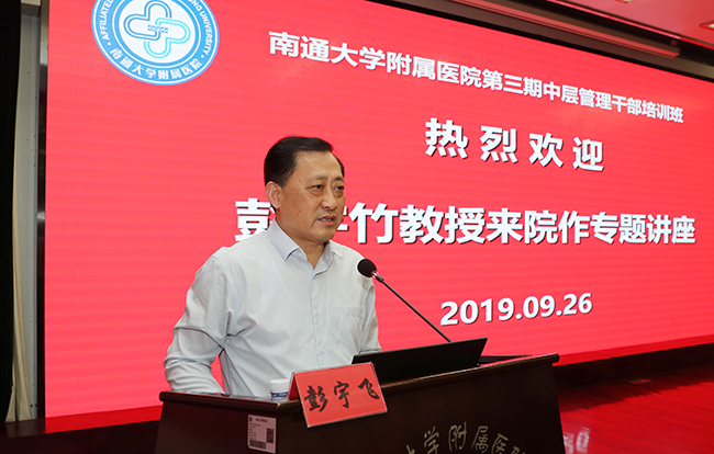 为进一步加强医院学科与人才队伍建设,9月26日下午,我院举行第三期中层管理干部培训班第四场专题报告会,邀请南京鼓楼医院党委书记彭宇竹教授来院做《学科为本强内涵 人才为要铸实力》专题报告。院党委常务副书记彭宇飞主持会议。在院院领导、中层以上管理干部、助理岗位人员约300人聆听了报告。 彭宇竹教授结合鼓楼医院的管理理念和实践,从学科人才建设的管理视角、鼓楼医院学科人才建设战略规划、学科人才考核评估与激励、医院学科实力等四个方面进行了讲解。彭教授指出,医院管理层要主动作为、超前规划,通过优化资源、搭建平台和内涵打造等路径,构建医院学科人才建设综合战略管理模型。同时开展学科人才调研分析,建立学科和学科带头人评价指标体系,实行科主任责任制考核制,强化学科人才考核排名结果运用,多措并举推动学科与人才队伍建设发展。 院党委常务副书记彭宇飞对报告会进行了总结。他指出,鼓楼医院作为省内的标杆医院,其管理理念和管理实践,以及在学科建设、人才培养等方面的做法和经验,值得大家好好学习借鉴。全体中层管理干部要从建设的角度做好规划、围绕中心、服务大局,不断开阔眼界、创新思路、自我革新,多听、多看、多学、多思考,切实提升我院学科建设水平,不断增强人才队伍建设,为医院实现跻身全国医院百强榜的奋斗目标发挥每个人的聪明才智。 彭宇竹现任南京鼓楼医院党委书记,南京医科大学教授,中国研究型医院学会文化分会执行会长、理论创新分会副会长,南京大学医院管理研究所副所长。先后获得中华医学会全国人文医学管理荣誉奖、省优秀院长、南京大学EMBA年度人物等荣誉。叶伊湉