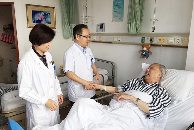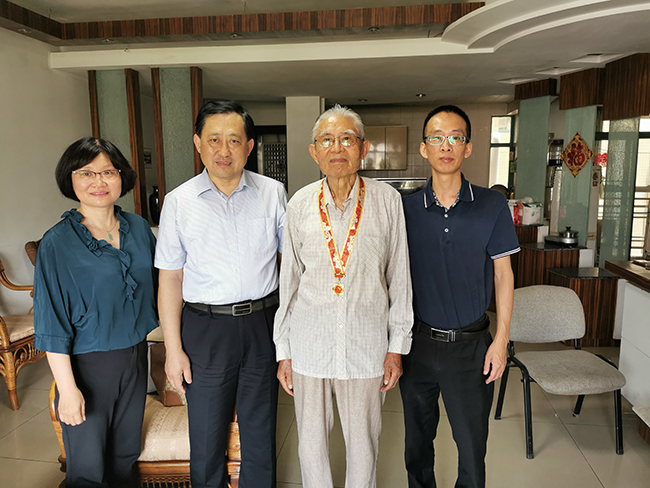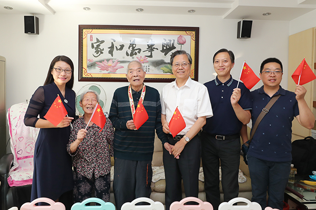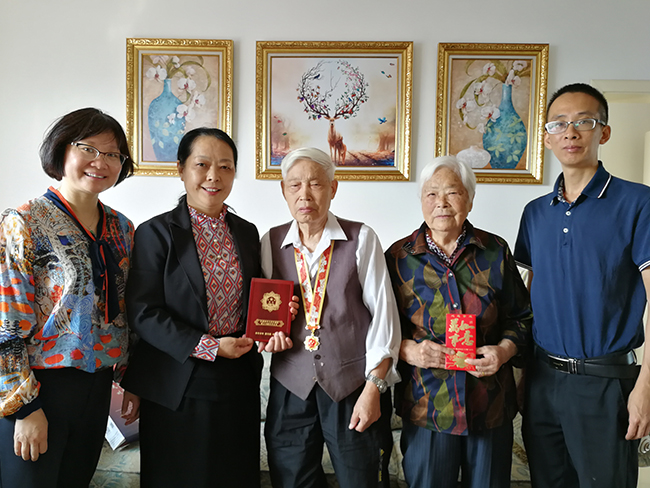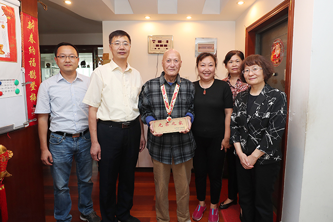 近日,中共中央、国务院、中央军委向中华人民共和国成立前参加革命工作的、健在的老战士老同志等群体颁发“庆祝中华人民共和国成立70周年”纪念章。我院7位同志获授纪念章,其中离休干部6位,他们是:顾锡锦、倪诗礼、路云龙、朱沛、陆德莪、尤锡生,全国先进工作者1位:急诊医学科主任黄中伟。 “庆祝中华人民共和国成立70周年”纪念章是至高的国家功勋荣誉,颁发给为共和国作出杰出贡献的人员。纪念章使用铜胎镀金材质,通径为50毫米,主要元素为五星、“70”飘带、团锦结、如意祥云和光芒,主色调为红色和金色。核心部分为五星,代表国家荣誉。“70”飘带象征中华人民共和国70年奋斗历程。团锦结环绕在五星和“70”飘带周围,寓意全国各族人民大团结,构建人类命运共同体的愿景。章体外环以如意祥云、光芒构成,象征人民对美好生活的向往,同时表达隆重庆祝中华人民共和国生日,礼赞国家富强、民族振兴、人民幸福的辉煌成就,以及在70年辉煌奋斗成就的基础上不忘初心、继续前进的坚定决心。 我院党委书记高建林等院领导带领组织部、党委宣传部、党办院办、离退办等部门负责人走访慰问,将纪念章送到老干部和全国先进工作者手中。 国庆节前夕,院领导还带队走访慰问了部分资深专家。傅 轩
