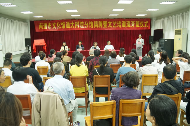 经过前期积极筹备和精心组织,南通市文化馆分馆于10月9日落户我院,并在院工会活动室举行了简朴而隆重的“南通市文化馆通大附院分馆”揭牌暨文艺培训班开班仪式,南通市文广旅局副局长倪小平、市文化馆馆长曹锦扬、副馆长张乐天、院党委副书记邢晓源等相关领导出席,院工会常务副主席倪歌主持,四位任课老师、文化馆工作人员及培训班学员代表参加了活动。 仪式上,市文化馆副馆长张乐天介绍了分馆筹建情况和任课老师安排,市文化馆馆长曹锦扬与我院党委副书记邢晓源签署文化共建协议。邢晓源副书记和市文广旅局公共服务处处长俞哲为“南通市文化馆通大附院分馆”共同揭牌,并由曹锦扬馆长向倪歌颁发了分馆馆长聘书。著名书法家张晏和赛文丽分别代表任课老师和学员发言。 邢晓源副书记在致辞中代表院方对南通市文化馆通大附院分馆的开馆表示热烈的祝贺,对多年来关心、支持附院文化事业发展的各级领导、专家及老师们表示崇高的敬意和衷心的感谢。邢书记向与会嘉宾介绍了我院发展概况,充分肯定了院工会在丰富职工文化生活、提升综合素质、促进身心健康方面所做出的努力和成绩,并勉励员工们在放松身心、享受艺术的同时,用更饱满的激情投入到医疗工作中去。 最后,市文广旅局党组成员、副局长倪小平发表了热情洋溢的讲话。他强调:文艺工作者与医务工作者有着共同之处,那就是用真情、真心、真爱去追求大善大美的境界。他提出通大附院与南通市文化馆实现“人员互通、优势互补、资源共享、服务联动、共同提高”的文化共建目标,共同探索企业文化的发展与提升,不仅有助于共建双方整合文化资源、提升服务效能,也是推动南通市现代公共文化服务体系建设的有益实践。他勉励大家,以实现好、维护好、发展好人民群众文化权益为宗旨,建设“大爱,大善,大美”的公共文化服务体系,努力推动我市公共文化服务体系建设再上一个新台阶而共同努力。 据悉,市文化馆为我院文艺培训班配备了强大的师资力量,培训项目涵盖声乐、国画、书法、拉丁舞等四个方面,分别由著名书法家张晏、著名画家余曾善、歌唱家赵姜丽、拉丁舞省级比赛冠军王晓辰担任辅导老师。培训的形式也灵活多样,集理念技能指导、大师作品赏析和实践能力提升三位一体,“讲授、活动、总结”穿插进行,得到了员工的热烈响应。学员们纷纷表示,要珍惜这难得的学习机会,开阔视野、丰富业余生活、增长文艺知识、提升自身素养,以更好地适应新的形势,不断提高生活质量和工作能力。吴信华