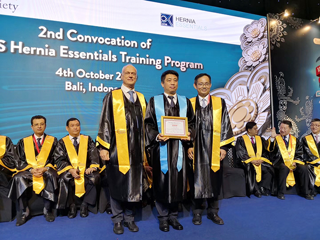 近日,大外科副主任、普外科主任医师王鹏受邀分别参加了在德国汉堡举办的第41届欧洲疝外科年会(EHS)及在印度尼西亚举办的第15届亚太疝协会(APHS)年会。两次盛会是欧洲及亚太地区疝外科领域专家、学者的学术盛宴,共吸引了全球40余个国家和地区1500余名疝外科医生参会。王鹏受大会主席邀请在两次会议上作学术演讲,在国际疝外科展示了通大附院人的风采。 在欧洲疝年会及亚太疝年会上,王鹏就“常规器械经脐单孔腹腔镜经腹腹膜前疝修补术(TUSIL-TAPP)”进行了学术演讲,获得国外专家的好评,并对此新技术新理念进行了深入探讨。在亚太疝年会上颁发了第二届亚太地区疝外科讲师证书,王鹏历经三次的学习、培训及考核,顺利获得讲师证。截止目前,亚太地区共有75名医师获得该项证书。 王鹏现为中国医师协会疝和腹壁外科分会青年委员,中华医学会江苏省分会疝和腹壁外科学组委员,南通市医学会外科分会疝和腹壁外科学组组长。其开展的各类疝修补术可根据患者的情况进行术式“私人定制”,尤其是常规器械单孔腹腔镜疝修补术数量居全国前列,在国内具有较大的影响力。汪 彭