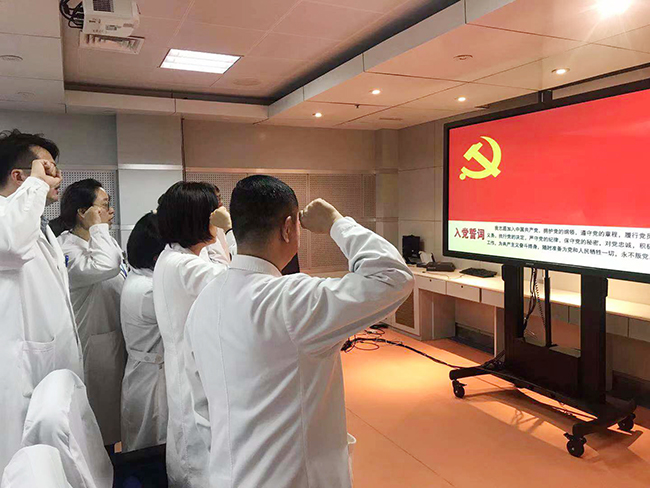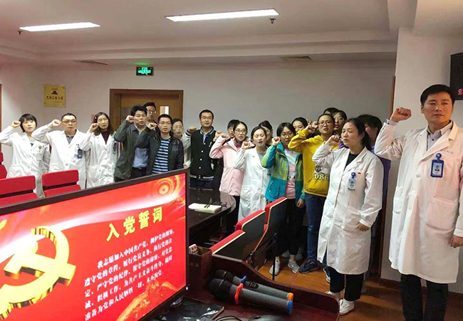 病理科党支部开展“不忘初心、牢记使命”主题教育 10月31日下午,病理科党支部开展“不忘初心、牢记使命”主题教育。党支部全体党员举行了重温入党誓词的仪式,面对鲜红的党旗,支部副书记谭忠华作为领誓人,带领支部新老党员一起高举右手,再次庄严宣誓。“我志愿加入中国共产党……随时准备为党和人民牺牲一切,永不叛党。”铿锵恢宏的誓词,强烈震撼着在场的每一位党员,一字一句,神圣而豪迈,体现了党员同志们对中国共产党的无限忠诚。 谭忠华就“不忘初心、牢记使命”主题教育谈了自己的想法和见解——一堂“不忘初心、勇于担当,牢记使命、永葆本色”的主题党课。他和支部全体党员一起重温了中国共产党人的初心、使命、总的要求是什么,党员要自觉做到“四重”、“四亮”、要增强四个意识,提升四个自信,做到两个维护。同时结合本职工作,要求支部党员同志以实际行动充分发扬“敬佑生命、救死扶伤,甘于奉献、大爱无疆”的新时代医疗卫生职业精神;以实际行动充分体现通大附院人“为千万江海百姓的健康与生命保驾护航,为千万江海百姓享受美好生活提供更高的生命质量和更长的生命周期”的初心和使命;以实际行动为“大医精诚、以宏慈善”院训精神添砖加瓦,丰富其内涵实质;做好自身定位、围绕中心工作,为临床服务,为病患服务;树立和践行“一种品格、四种精神”;要有功成不必在我、功成必定有我的使命担当。谭忠华还对本支部下一步学习教育重点进行了部署安排。 刘益飞、王伟、卞婷婷、毛小英及全体党员围绕“重读入党志愿、重忆入党经历、重问入党初心,学习周恩来精神,赵亚夫、王继才先进事迹,初心是什么、使命干什么、奋斗比什么”做主题思想汇报。 通过此次活动,全体党员纷纷表示,将继续守初心、担使命,找差距、抓落实,努力做到知行统一,将“健康所系,性命相托”“大医精诚,以宏慈善”的理念贯穿于日常的本职工作中。 卞婷婷