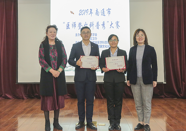 经过前期的辅导和培训,11月12日,我院党委宣传部组织6名选手参加了2019年“南通市医师登台科普秀大赛”。凭借贴近百姓的选题、科学易懂的表达等优势,中医科陈韬、口腔内科李锐以得分第一、第二名的佳绩荣获一等奖,甲乳外科薛旦旦以得分第三名的佳绩荣获二等奖,妇产科邹祎、手外科顾晓坤荣获三等奖,生殖医学中心王霞荣获优秀奖。 此次大赛由南通市医学会、南通市爱卫办主办,来自全市22家单位的45名医师同台竞技。陈韬、李锐、薛旦旦作为南通市的“五强选手”,将于12月3日参加2019年江苏省“医师登台科普秀”大赛苏南赛区比赛。傅 轩