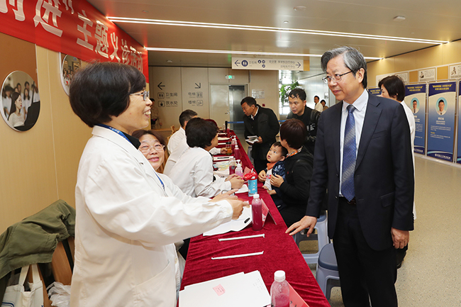 11月16日,正逢南通大学启动支持民主党派、无党派人士开展“不忘合作初心,继续携手前进”主题教育之际,我院于新门诊楼9楼举办“不忘合作初心,继续携手前进”民主党派专家义诊活动,也是我院“新址新福祉,大庆送大爱”系列公益活动的第五场,来自农工民主党、民盟、民建、民革、九三学社、致公党等各民主党派的16名高级专家现场义诊。院党委书记高建林看望慰问了义诊专家。 义诊现场,来自心血管内科、肾脏内科、消化内科、血液内科、内分泌科、神经内科、普外科、妇产科、儿科、耳鼻咽喉科、口腔科、肿瘤科、中医科、皮肤科等14个专科的民主党派专家为前来就诊的市民认真检查,提出治疗方案,解答疑问,指导用药。现场还提供免费测血压、测血糖、健康咨询服务。当天共为300多位群众提供义诊服务。 11月14日,南通大学召开支持民主党派、无党派人士开展“不忘合作初心,继续携手前进”主题教育动员会,对学校民主党派和无党派人士开展主题教育活动进行动员部署。我院组织民主党派专家义诊活动,以实际行动落实专题部署,进一步激发了我院民主党派成员凝心聚力推进医院发展的热情。傅 轩