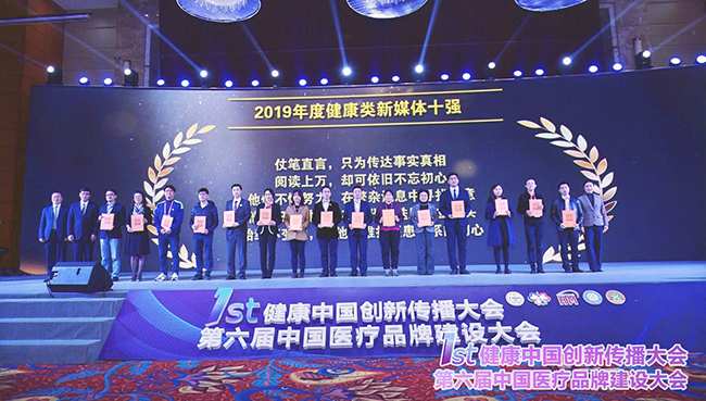 又 讯 在11月21日举行的首届健康传播金牌讲师巅峰对决赛暨风采展演上,我院荣获2019年度健康新媒体(医疗机构类)二十强、2019年度医疗互联网品牌影响力(综合医疗机构)二十强。院领导高建林、施炜、彭宇飞为受到表彰的机构与个人颁奖。